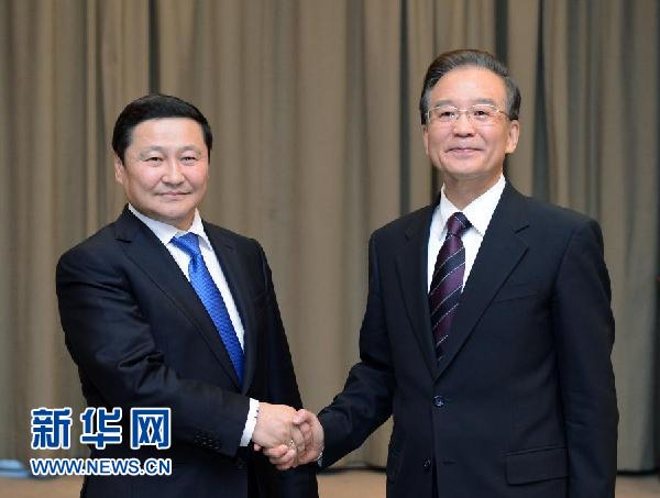 ??? 12月5日,國務(wù)院總理溫家寶在比什凱克會見蒙古國總理阿勒坦呼亞格。 新華社記者謝環(huán)馳攝