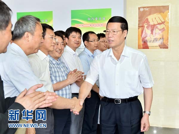 ????新華網(wǎng)北京6月5日電? 6月5日是世界環(huán)境日,中共中央政治局常委、國務(wù)院副總理張高麗上午到中國環(huán)境科學(xué)研究院和中國環(huán)境監(jiān)測總站調(diào)研環(huán)??萍脊ぷ?,看望一線科技工作者,并主持召開院士專家座談會。他強(qiáng)調(diào),要認(rèn)真學(xué)習(xí)貫徹習(xí)近平總書記系列重要講話精神,堅(jiān)持環(huán)境保護(hù)基本國策,堅(jiān)持保護(hù)優(yōu)先,在保護(hù)中發(fā)展,在發(fā)展中保護(hù),以對人民群眾、對子孫后代高度負(fù)責(zé)的態(tài)度,科學(xué)系統(tǒng)謀劃推動環(huán)保工作,堅(jiān)決向污染宣戰(zhàn),下決心把環(huán)境污染治理好、把生態(tài)環(huán)境建設(shè)好,推進(jìn)生產(chǎn)方式、生活方式和消費(fèi)模式的綠色轉(zhuǎn)型。