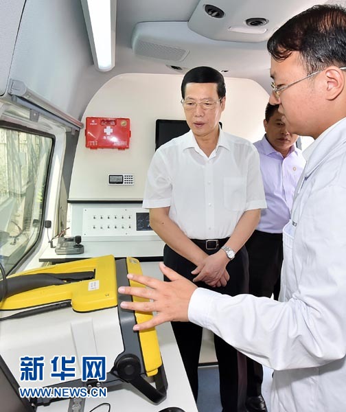 ??? 6月5日,中共中央政治局常委、國務(wù)院副總理張高麗到中國環(huán)境科學(xué)研究院和中國環(huán)境監(jiān)測總站調(diào)研。這是張高麗在水質(zhì)應(yīng)急監(jiān)測車上了解水質(zhì)監(jiān)測預(yù)警工作情況。新華社記者 李濤 攝