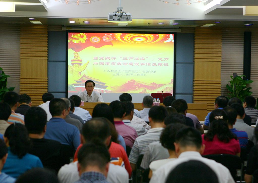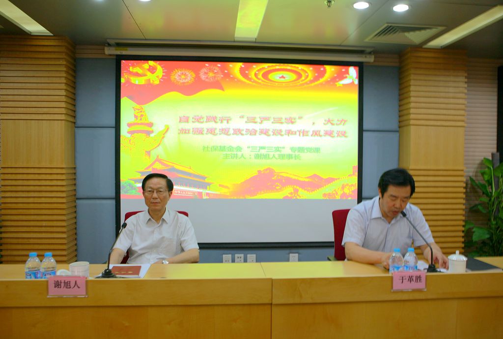 5月25日下午,全國社會保障基金理事會謝旭人理事長為全體干部職工講授了題為“自覺踐行三嚴(yán)三實(shí),大力加強(qiáng)思想政治建設(shè)和作風(fēng)建設(shè)”的專題黨課,同時對開展“三嚴(yán)三實(shí)”專題教育進(jìn)行了動員。于革勝副理事長主持會議,中央組織部干部四局張晨光同志應(yīng)邀參加。
