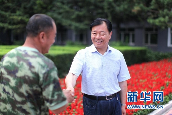 威縣縣委書記呂志成(右)到?jīng)持萱?zhèn)邱霍寨村慰問老黨員邱西臣( 2015年6月23日) 。