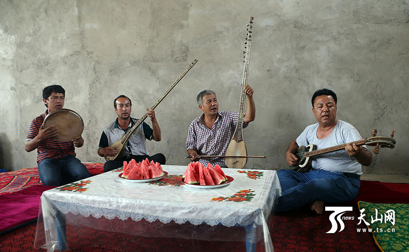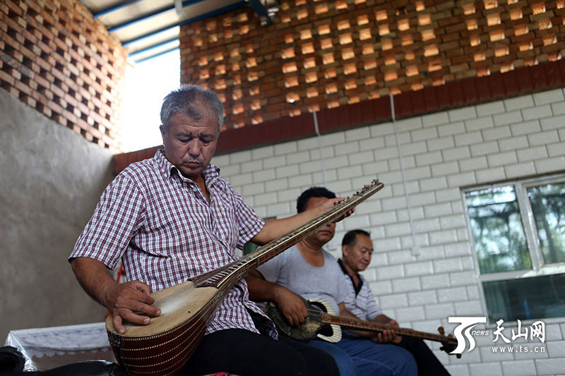 2013年以來,鄯善縣拿出資金,在全縣每個自然村建立農(nóng)民“文化大院”,給農(nóng)民提供文化娛樂的場所,十二木卡姆也自然成為大院里必備的節(jié)目,老藝人們忙碌了不少。最近正值齋月期間,村民間的文化活動照舊開展,蘇來曼 阿不都時常還要去周圍村里演出,最讓他高興的是,十二木卡姆這門古老的藝術(shù),在今天依舊被大家重視和喜愛,這一點(diǎn)對于他來說,比金錢更重要?!爸灰蠹疫€喜歡十二木卡姆,在平日里能見到它,它的傳承和發(fā)展就有不竭動力?!?蘇來曼 阿不都說。
