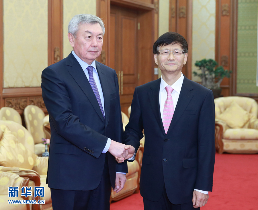??? 11月4日,中共中央政治局委員、中央政法委書記孟建柱在北京釣魚臺(tái)國(guó)賓館會(huì)見哈薩克斯坦國(guó)家安全委員會(huì)主席阿貝卡耶夫。 新華社記者丁海濤攝