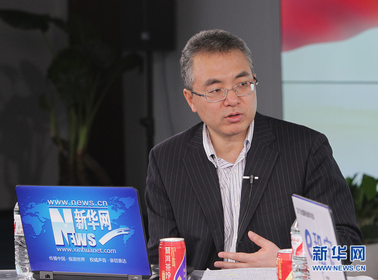 2015年3月13日,中國人民銀行金融研究所所長姚余棟做客新華網(wǎng)2015全國兩會特別訪談。圖為姚余棟回答問題。 新華網(wǎng) 郭 研 攝