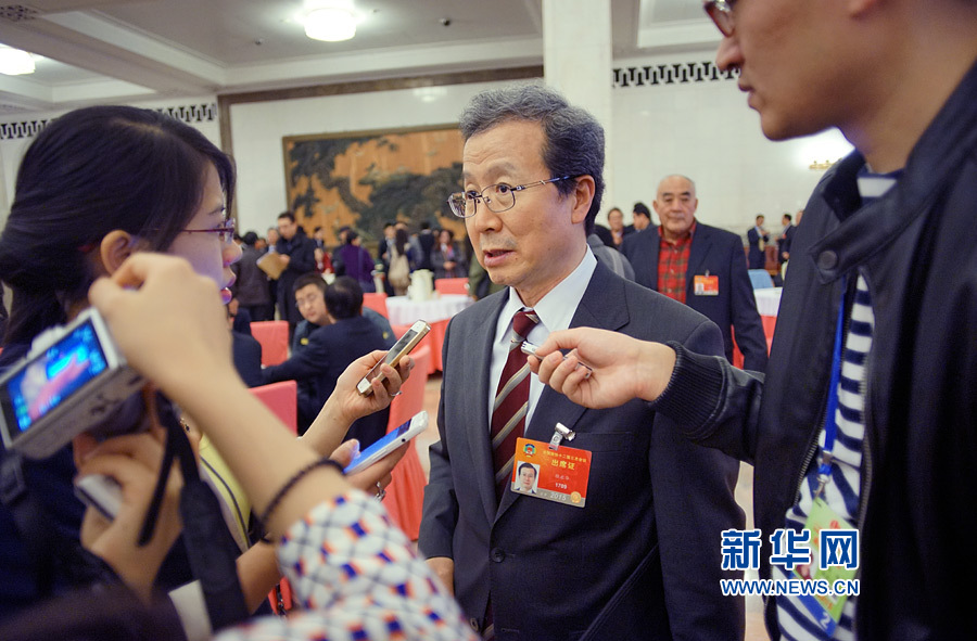 ????3月13日,全國政協(xié)十二屆三次會議在北京人民大會堂舉行閉幕會。圖為全國政協(xié)委員程永華接受記者采訪。新華網(wǎng)/中國政府網(wǎng)?翟子赫 攝