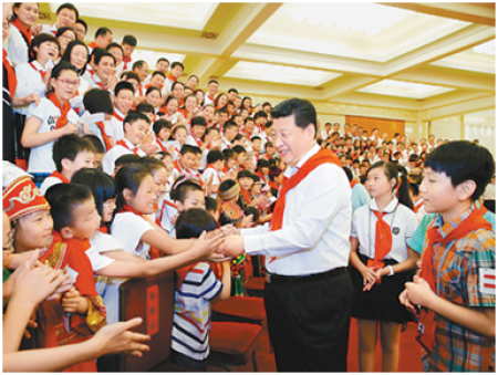2015年6月1日,中共中央總書記、國(guó)家主席、中央軍委主席習(xí)近平出席中國(guó)少年先鋒隊(duì)第七次全國(guó)代表大會(huì),并寄語(yǔ)全國(guó)少年兒童,他說(shuō):“我國(guó)社會(huì)主義現(xiàn)代化、中華民族偉大復(fù)興的中國(guó)夢(mèng),將來(lái)要在你們手中實(shí)現(xiàn),你們是未來(lái)的主力軍、生力軍。希望全國(guó)各族少年兒童從小學(xué)習(xí)做人、從小學(xué)習(xí)立志、從小學(xué)習(xí)創(chuàng)造,培養(yǎng)好思想、好品行、好習(xí)慣,今天做祖國(guó)的好兒童,明天做祖國(guó)的建設(shè)者。”