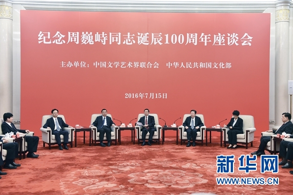 新華社北京7月15日電 紀念周巍峙同志誕辰100周年座談會7月15日在京舉行。中共中央政治局委員、中央書記處書記、中宣部部長劉奇葆出席座談會并講話。中國文聯(lián)主席孫家正出席。
