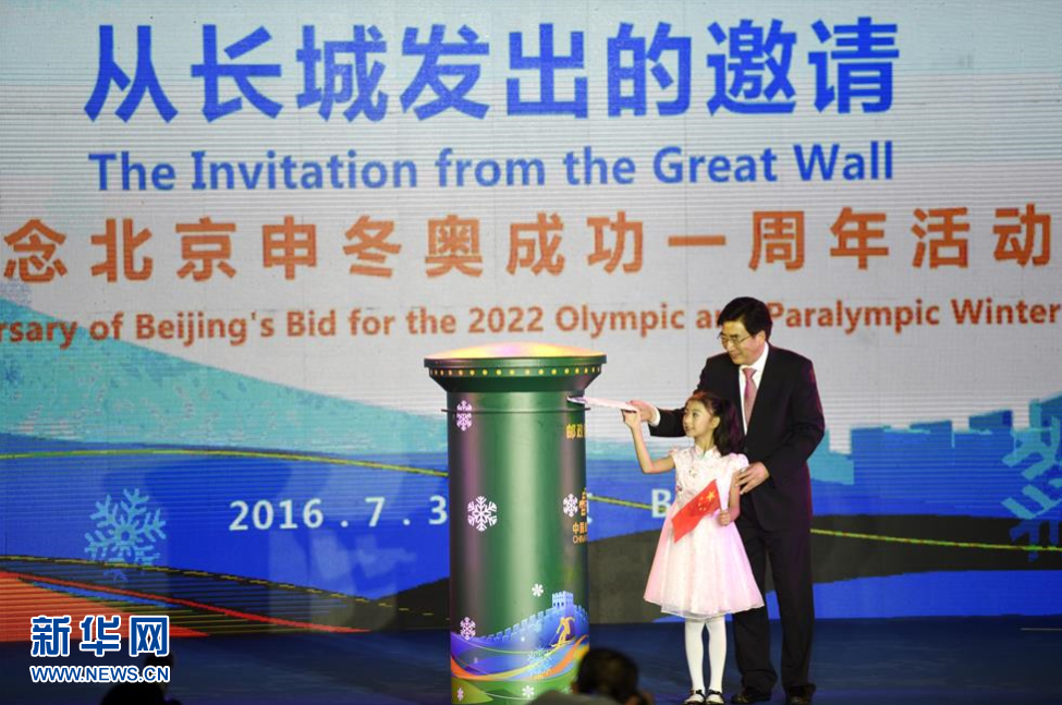 在活動現場,中共中央政治局委員、北京市委書記、北京冬奧組委主席郭金龍和一名少年兒童代表向郵筒投入第一封邀請函,象征著北京冬奧組委從長城發(fā)出邀請,面向全球征集北京2022年冬奧會會徽和冬殘奧會會徽設計方案。