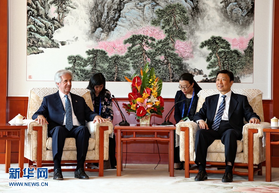 10月14日,中國(guó)國(guó)家副主席李源潮在河北唐山會(huì)見參加第十屆中國(guó)-拉美企業(yè)家高峰會(huì)的烏拉圭總統(tǒng)塔瓦雷·巴斯克斯。 新華社記者楊世堯攝