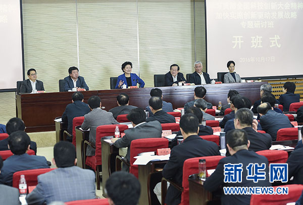 10月17日,中央組織部、中央黨校、科技部聯(lián)合舉辦的省部級干部“學(xué)習(xí)貫徹全國科技創(chuàng)新大會(huì)精神加快實(shí)施創(chuàng)新驅(qū)動(dòng)發(fā)展戰(zhàn)略”專題研討班在北京開班。中共中央政治局委員、國務(wù)院副總理劉延?xùn)|出席開班式并講話。新華社記者 張領(lǐng) 攝