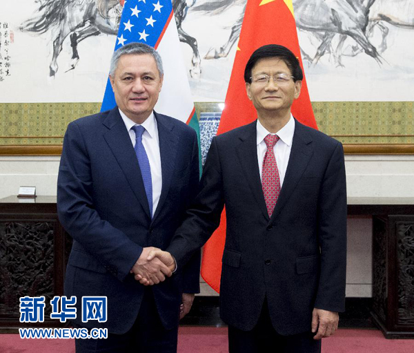 10月20日,中共中央政治局委員、中央政法委書記、中烏政府間合作委員會(huì)中方主席孟建柱在北京同烏茲別克斯坦第一副總理、中烏政府間合作委員會(huì)烏方主席阿齊莫夫舉行中烏政府間合作委員會(huì)雙方主席會(huì)晤。新華社記者 王曄 攝