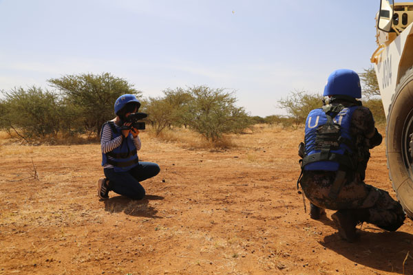 圖為記者在馬里采訪中國(guó)維和部隊(duì)
