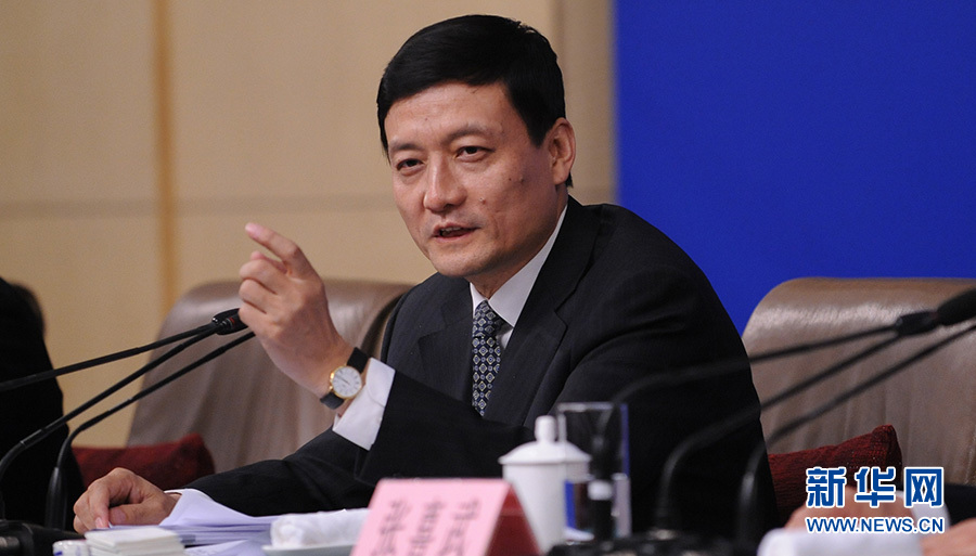 ??? 十二屆全國人大四次會議新聞中心于3月12日(星期六)14時(shí)30分在梅地亞中心多功能廳舉行記者會,邀請國務(wù)院國有資產(chǎn)監(jiān)督管理委員會主任肖亞慶、副主任張喜武、副主任黃丹華和副秘書長、新聞發(fā)言人彭華崗就“國企改革”的相關(guān)問題回答中外記者的提問。圖為肖亞慶回答記者提問。新華網(wǎng)/中國政府網(wǎng) 陳杰 攝
