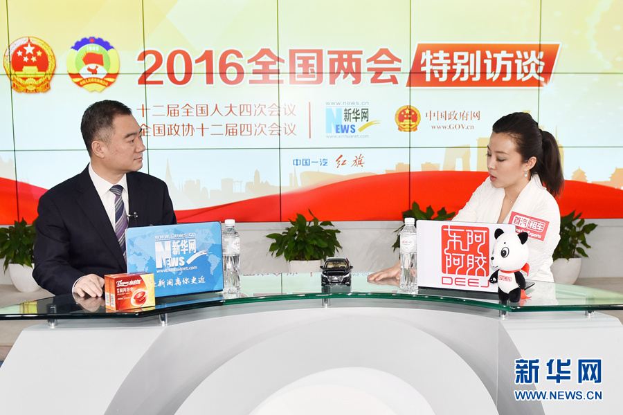 3月12日,全國(guó)人大代表,運(yùn)城市市長(zhǎng)王清憲做客新華網(wǎng)2016全國(guó)兩會(huì)特別訪談,與新華網(wǎng)網(wǎng)友在線交流。圖為王清憲在訪談現(xiàn)場(chǎng)。新華網(wǎng) 付宇鵬 攝