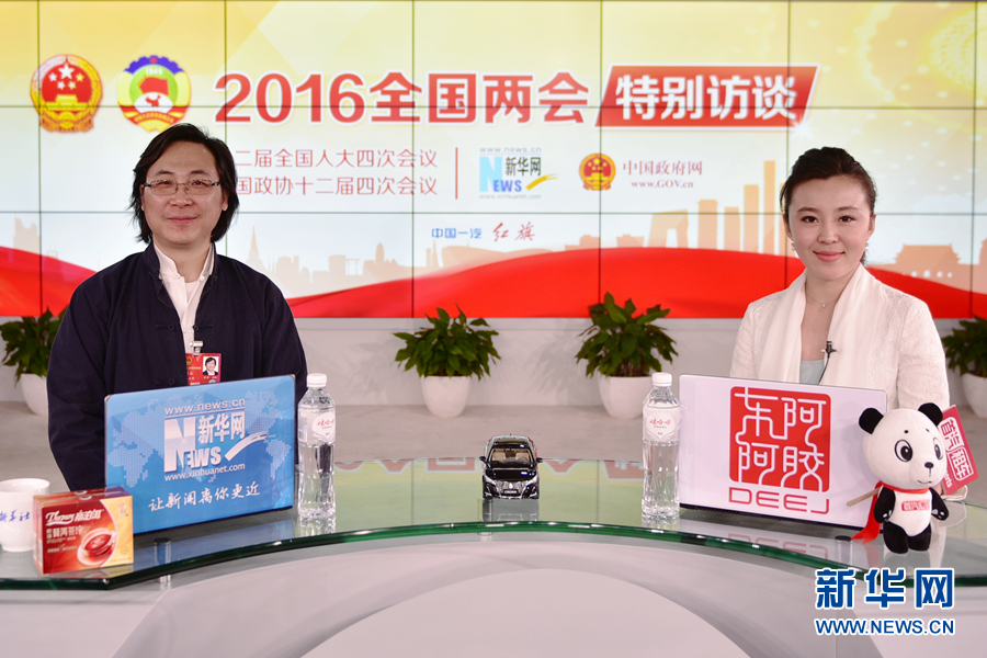 3月13日,全國人大代表、中國文聯(lián)全委、中國音樂家協(xié)會副主席,上海音樂家協(xié)會副主席、上海音樂學(xué)院副院長廖昌永做客新華網(wǎng)2016全國兩會特別訪談,與新華網(wǎng)網(wǎng)友在線交流。圖為廖昌永在訪談現(xiàn)場。新華網(wǎng) 郭小天 攝