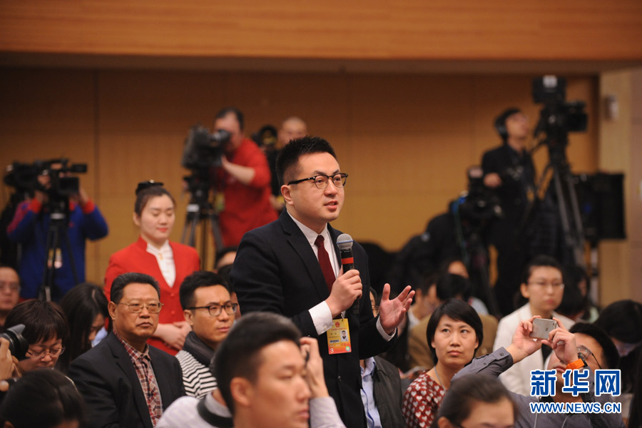 十二屆全國(guó)人大四次會(huì)議新聞中心于3月14日(星期一)10時(shí)在梅地亞中心多功能廳舉行記者會(huì),邀請(qǐng)交通運(yùn)輸部部長(zhǎng)楊傳堂、交通運(yùn)輸部運(yùn)輸服務(wù)司司長(zhǎng)劉小明、北京交通發(fā)展研究中心主任郭繼孚就“深化出租汽車(chē)改革與發(fā)展”的相關(guān)問(wèn)題回答中外記者的提問(wèn)。圖為中國(guó)網(wǎng)記者提問(wèn)。新華網(wǎng)/中國(guó)政府網(wǎng) 陳杰 攝