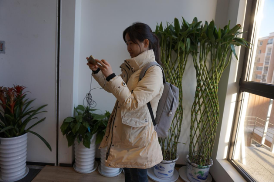 為確保新聞報道的真實、有效,新華網(wǎng)記者聶晨靜的勤奮和用心是大家所熟知的。無論在什么場景下,她都會實時、迅速地記錄下被采訪對象的一言一行?;蛲ㄟ^手機拍照、錄音,或通過手寫記錄,在采訪的記者里總能看到她忙碌的身影。在第一天的采訪行程結(jié)束后,大家已集合回到賓館休息,她還在現(xiàn)場對采訪對象進行著專訪。
