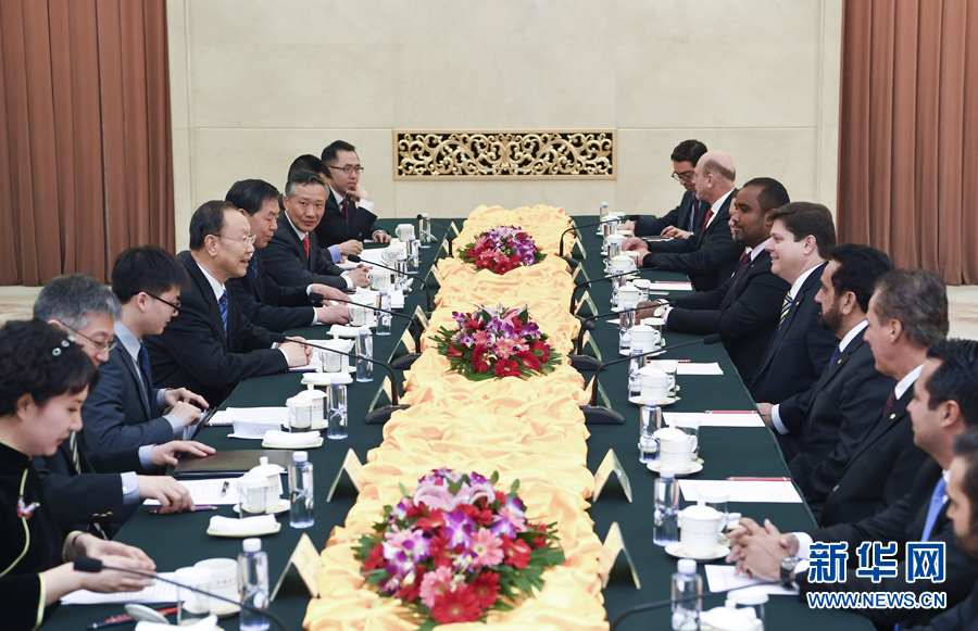 3月22日,中共中央書記處書記、全國政協(xié)副主席杜青林在北京會見巴西民主運動黨眾議院黨團領(lǐng)袖羅西率領(lǐng)的該黨干部考察團。 新華社記者張領(lǐng)攝