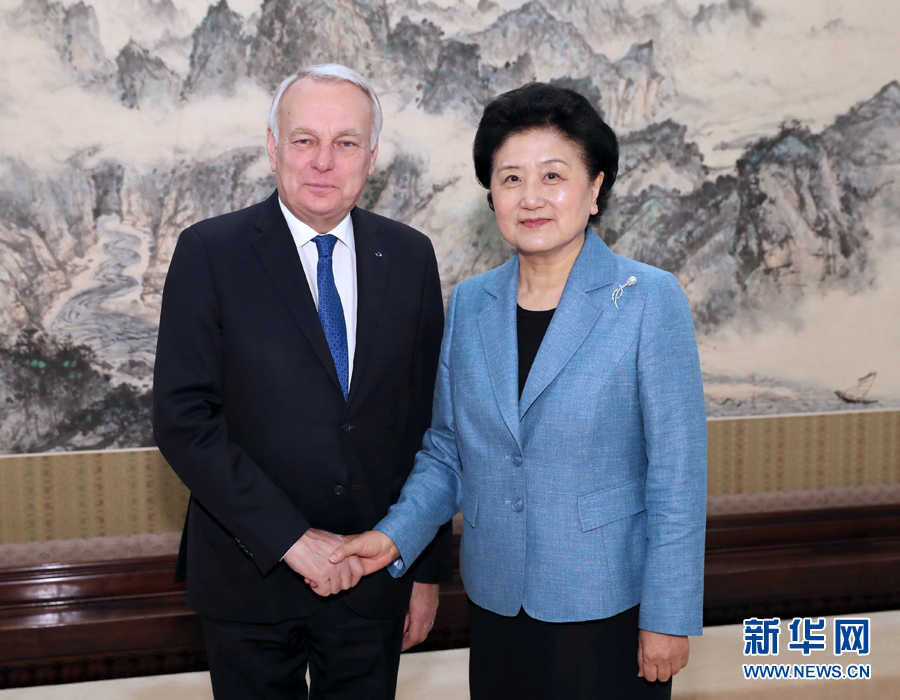 ??? 4月14日,國(guó)務(wù)院副總理劉延?xùn)|在北京中南海紫光閣會(huì)見(jiàn)中法高級(jí)別人文交流機(jī)制法方主席、法國(guó)外交和國(guó)際發(fā)展部部長(zhǎng)讓-馬克·艾羅。新華社記者 馬占成 攝