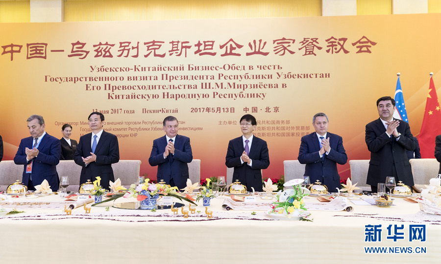 5月13日,中共中央政治局委員、中央政法委書記、中烏政府間合作委員會(huì)中方主席孟建柱在北京同烏茲別克斯坦總統(tǒng)米爾濟(jì)約耶夫共同出席中烏企業(yè)家餐敘會(huì)并致辭。新華社記者丁海濤 攝