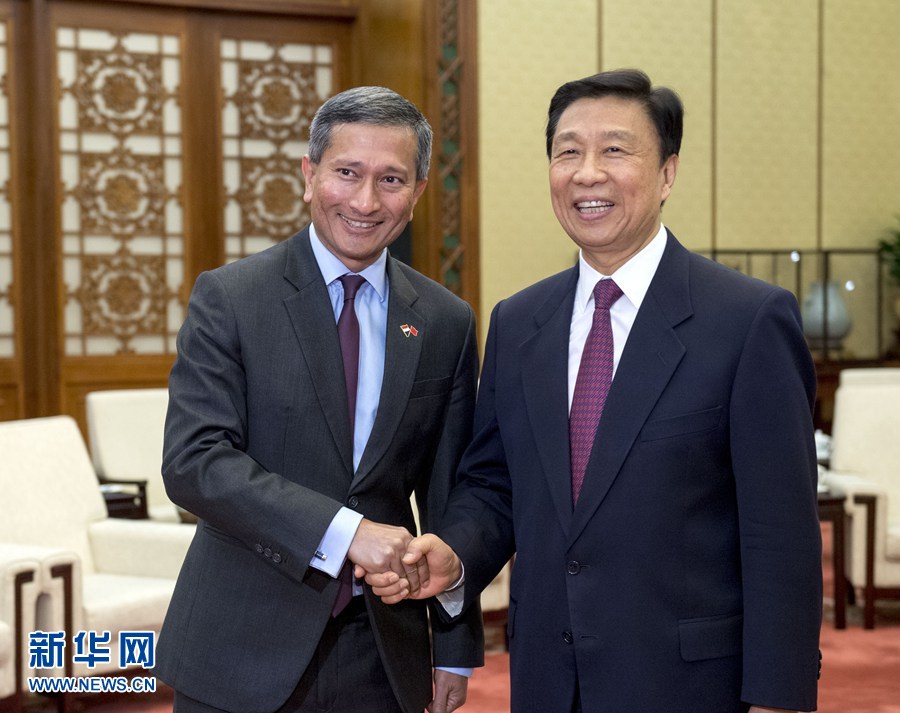 6月12日,國家副主席李源潮在北京會(huì)見新加坡外長維文。 新華社記者李學(xué)仁 攝