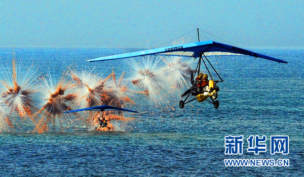 在實(shí)戰(zhàn)化演練中,特戰(zhàn)隊(duì)員駕駛?cè)且韴?zhí)行任務(wù)(2010年9月15日攝)。新華社發(fā)(林山杰 攝)
