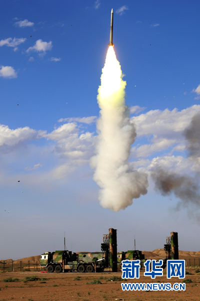 空軍地空導(dǎo)彈兵第二營在執(zhí)行“藍(lán)盾”演習(xí)任務(wù)中進(jìn)行實彈發(fā)射(2016年7月14日攝)。新華社發(fā)