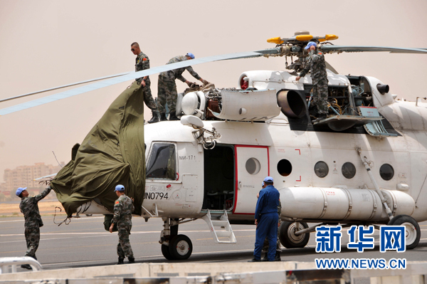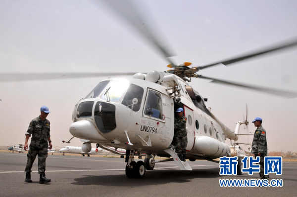 “建軍節(jié)前夕,在中國、蘇丹兩國兩軍有關(guān)部門的大力協(xié)同下,維和直升機(jī)分隊(duì)直升機(jī)試飛成功,具有標(biāo)志性意義?!敝袊v蘇丹大使館武官關(guān)愛兵對新華社記者說。
