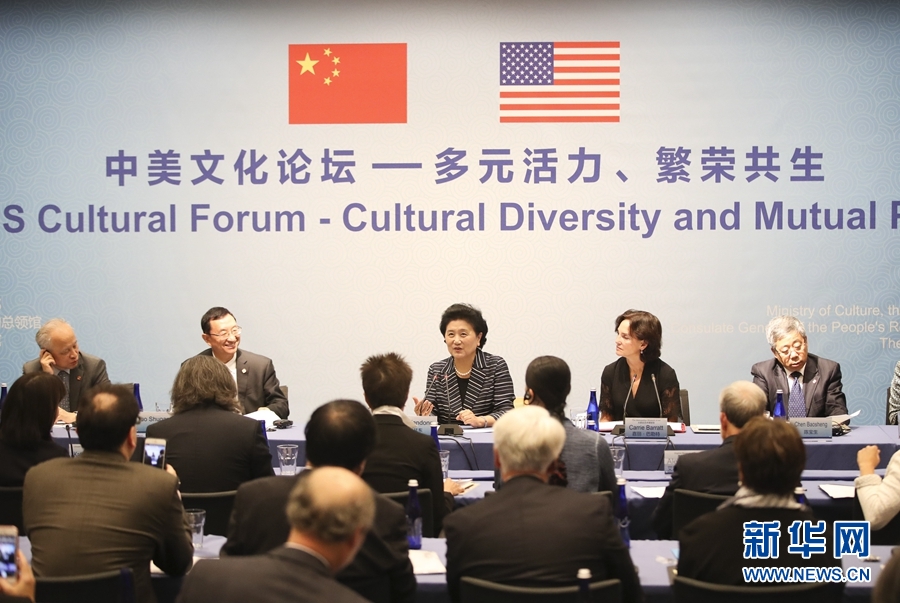 9月26日,在美國(guó)紐約大都會(huì)藝術(shù)博物館,國(guó)務(wù)院副總理劉延?xùn)|(中)出席中美文化論壇。當(dāng)?shù)貢r(shí)間9月26日,國(guó)務(wù)院副總理劉延?xùn)|在紐約大都會(huì)藝術(shù)博物館出席中美文化論壇并致辭。新華社記者 王迎 攝