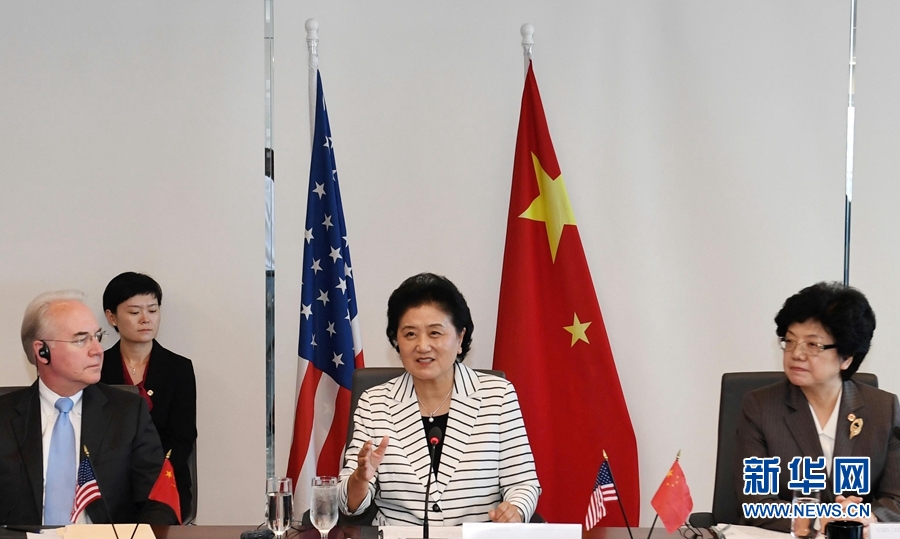 當(dāng)?shù)貢r(shí)間9月27日,國務(wù)院副總理劉延?xùn)|(中)在美國華盛頓戰(zhàn)略與國際問題研究中心出席中美衛(wèi)生合作研討會(huì)。新華社記者殷博古攝