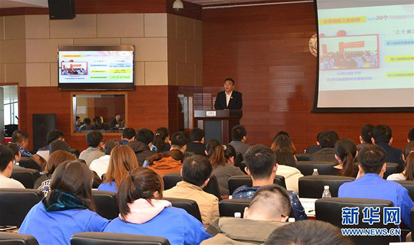 在國網(wǎng)天津濱海公司,張黎明在“十九大代表與國資系統(tǒng)青年面對面宣講會”上宣講十九大精神(11月10日攝)?!⌒氯A社發(fā)