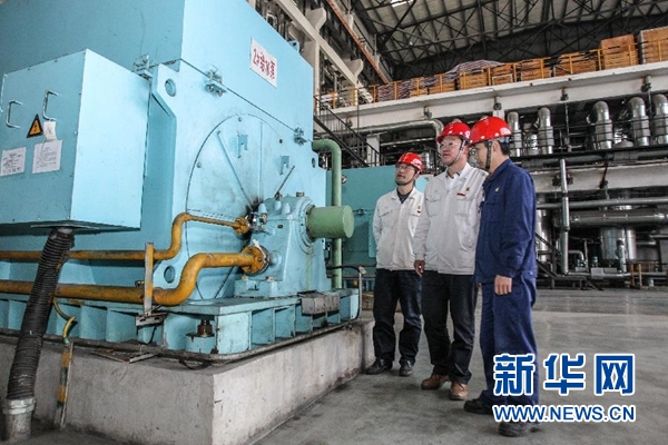 10月31日,王樹春(中)在湖南華菱湘潭鋼鐵有限公司135MW超高壓發(fā)電項目廠房中了解設(shè)備運行狀況。十九大代表、湖南華菱湘潭鋼鐵有限公司黨委書記王樹春從北京回到鋼廠,下車后直奔會議室,激動地向等待在此的班子成員傳達十九大精神。對這個流著紅色血液、有著9693名黨員、剛剛擺脫生存困境的老鋼廠來說,十九大精神無疑帶來了新希望、吹響了新號角。新華社記者 王天聰 攝