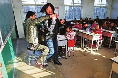 這節(jié)課,學(xué)生們聽(tīng)得很認(rèn)真。45分鐘的課程很快過(guò)去,下課后,妻子又把曹老師背了下來(lái)?!拔覀儛?ài)曹教師?!卑嗬镌S多小朋友告訴記者。