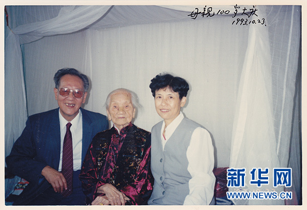 黃旭華(左一)在母親一百歲大壽時(shí)合影(資料照片,1993年10月23日攝)。新華社記者 熊琦 攝