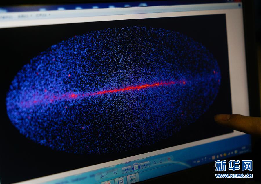 11月30日,國際權(quán)威學術(shù)期刊《自然》在線發(fā)布,暗物質(zhì)粒子探測衛(wèi)星“悟空”在太空中測量到電子宇宙射線的一處異常波動。暗物質(zhì),一個人類追尋多年的宇宙魅影,被中國“悟空”發(fā)現(xiàn)了疑似蹤跡。(新華社記者李響攝)