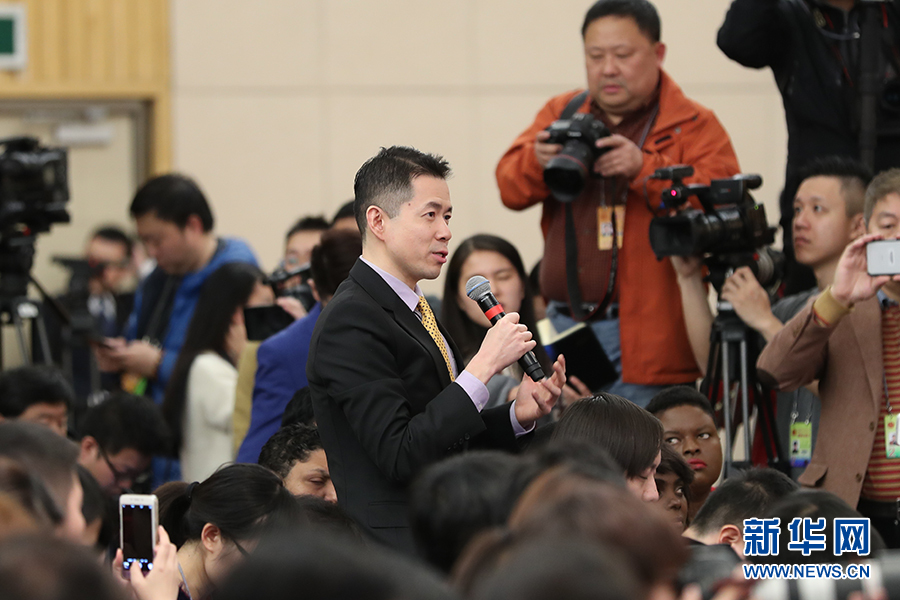 十二屆全國人大五次會(huì)議新聞中心于3月8日(星期三)10時(shí)在梅地亞中心多功能廳舉行記者會(huì),邀請(qǐng)外交部部長王毅就“中國的外交政策和對(duì)外關(guān)系”的相關(guān)問題回答中外記者的提問。圖為美國有線電視新聞網(wǎng)記者提問。新華網(wǎng)/中國政府網(wǎng)?翟子赫 攝