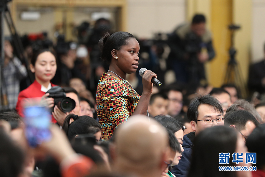 十二屆全國(guó)人大五次會(huì)議新聞中心于3月8日(星期三)10時(shí)在梅地亞中心多功能廳舉行記者會(huì),邀請(qǐng)外交部部長(zhǎng)王毅就“中國(guó)的外交政策和對(duì)外關(guān)系”的相關(guān)問(wèn)題回答中外記者的提問(wèn)。圖為坦桑尼亞標(biāo)準(zhǔn)報(bào)業(yè)集團(tuán)記者提問(wèn)。新華網(wǎng)/中國(guó)政府網(wǎng) 翟子赫 攝