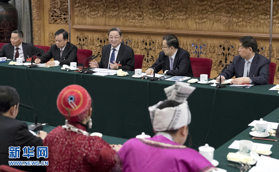 3月9日,中共中央政治局常委、全國(guó)政協(xié)主席俞正聲參加十二屆全國(guó)人大五次會(huì)議貴州代表團(tuán)的審議。 新華社記者 丁海濤 攝