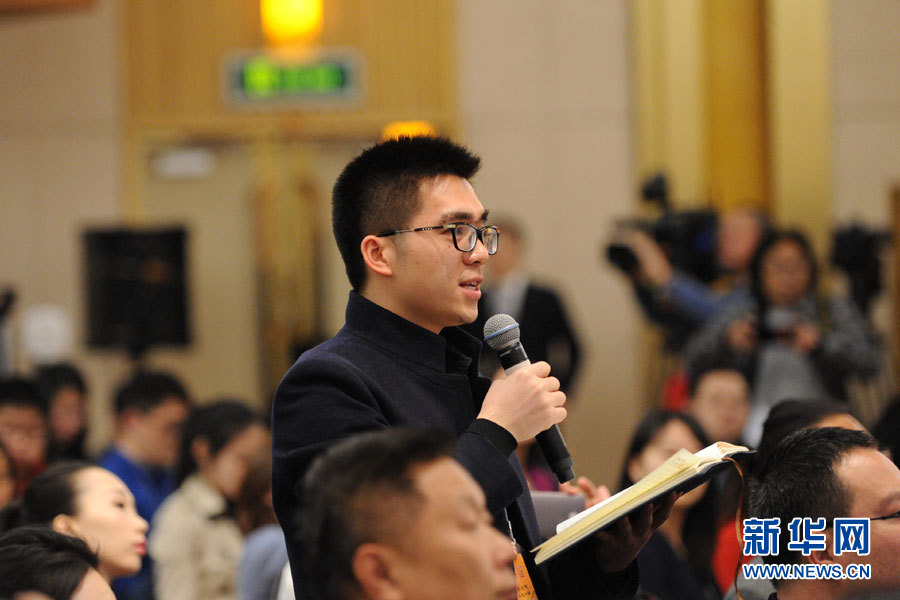 3月10日,十二屆全國人大五次會(huì)議新聞中心舉行記者會(huì),邀請(qǐng)國家工商行政管理總局局長張茅就“深化商事制度改革”的相關(guān)問題回答中外記者的提問。圖為人民日?qǐng)?bào)記者提問。新華網(wǎng)/中國政府網(wǎng) 王健 攝