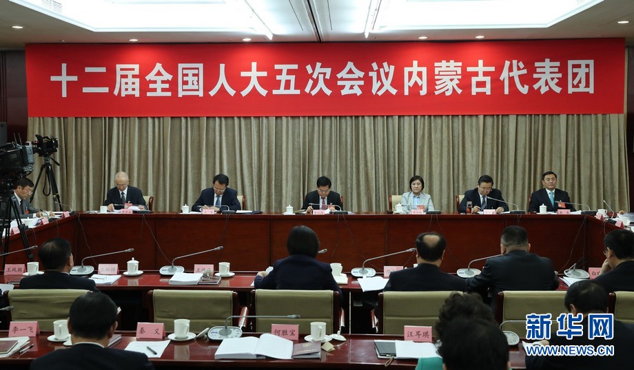 3月10日,十二屆全國(guó)人大五次會(huì)議內(nèi)蒙古代表團(tuán)全體會(huì)議向媒體開放。新華網(wǎng)發(fā)(王超 攝)