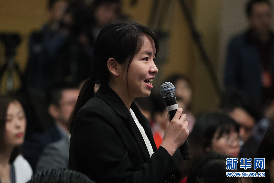 3月11日,十二屆全國人大五次會議新聞中心舉行記者會,邀請工業(yè)和信息化部部長苗圩、副部長辛國斌和總工程師、新聞發(fā)言人張峰就“推進(jìn)實施‘中國制造2025’”的相關(guān)問題回答中外記者的提問。圖為中國日報記者提問。新華網(wǎng)/中國政府網(wǎng) 傅義洲 攝