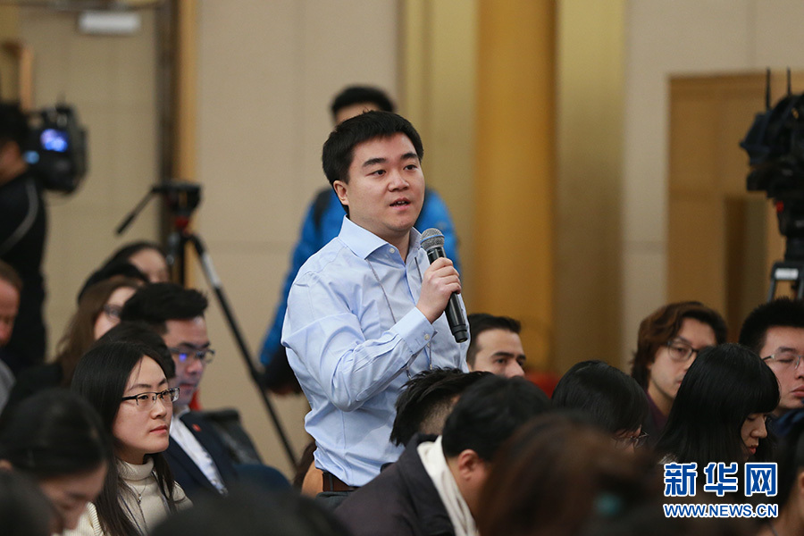 3月11日,十二屆全國(guó)人大五次會(huì)議新聞中心舉行記者會(huì),邀請(qǐng)工業(yè)和信息化部部長(zhǎng)苗圩、副部長(zhǎng)辛國(guó)斌和總工程師、新聞發(fā)言人張峰就“推進(jìn)實(shí)施‘中國(guó)制造2025’”的相關(guān)問(wèn)題回答中外記者的提問(wèn)。圖為中國(guó)國(guó)際廣播電臺(tái)記者提問(wèn)。新華網(wǎng)/中國(guó)政府網(wǎng) 傅義洲 攝