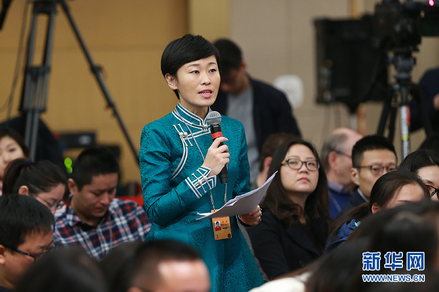 3月11日,十二屆全國(guó)人大五次會(huì)議新聞中心舉行記者會(huì),邀請(qǐng)工業(yè)和信息化部部長(zhǎng)苗圩、副部長(zhǎng)辛國(guó)斌和總工程師、新聞發(fā)言人張峰就“推進(jìn)實(shí)施‘中國(guó)制造2025’”的相關(guān)問(wèn)題回答中外記者的提問(wèn)。圖為內(nèi)蒙古廣播電視臺(tái)記者提問(wèn)。新華網(wǎng)/中國(guó)政府網(wǎng) 傅義洲 攝