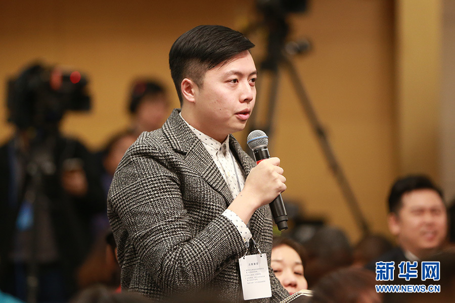 3月11日,十二屆全國人大五次會議新聞中心舉行記者會,邀請科技部部長萬鋼、秘書長徐建培就“2016年創(chuàng)新驅(qū)動發(fā)展戰(zhàn)略實施進(jìn)展成效和2017年重點工作”的相關(guān)問題回答中外記者的提問。圖為臺灣旺旺中時媒體集團(tuán)旺報記者提問。新華網(wǎng)/中國政府網(wǎng) 王健 攝