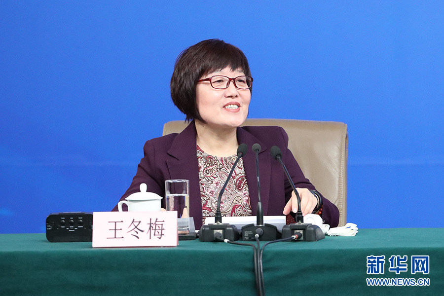3月11日,十二屆全國人大五次會議新聞中心舉行記者會,邀請科技部部長萬鋼、秘書長徐建培就“2016年創(chuàng)新驅(qū)動發(fā)展戰(zhàn)略實施進展成效和2017年重點工作”的相關問題回答中外記者的提問。圖為記者會主持人王冬梅。新華網(wǎng)/中國政府網(wǎng)?傅義洲 攝