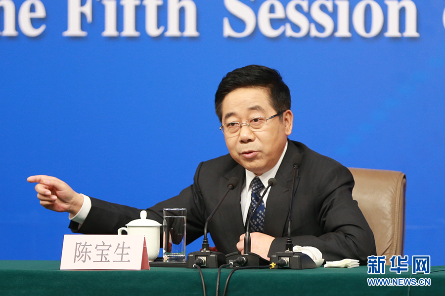 3月12日,十二屆全國人大五次會(huì)議新聞中心舉行記者會(huì),邀請(qǐng)教育部部長陳寶生就“教育改革發(fā)展”的相關(guān)問題回答中外記者的提問。圖為教育部部長陳寶生回答記者提問。新華網(wǎng)/中國政府網(wǎng) 傅義洲 攝