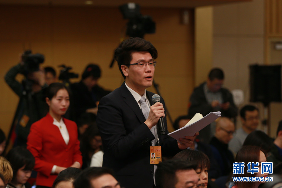 3月14日,十二屆全國(guó)人大五次會(huì)議新聞中心舉行記者會(huì),邀請(qǐng)國(guó)家質(zhì)檢總局局長(zhǎng)支樹平、副局長(zhǎng)兼國(guó)家認(rèn)證認(rèn)可監(jiān)督管理委員會(huì)主任孫大偉、國(guó)家標(biāo)準(zhǔn)化管理委員會(huì)主任田世宏就“質(zhì)量提升”的相關(guān)問(wèn)題回答中外記者的提問(wèn)。圖為新華社記者提問(wèn)。新華網(wǎng)/中國(guó)政府網(wǎng) 傅義洲 攝?