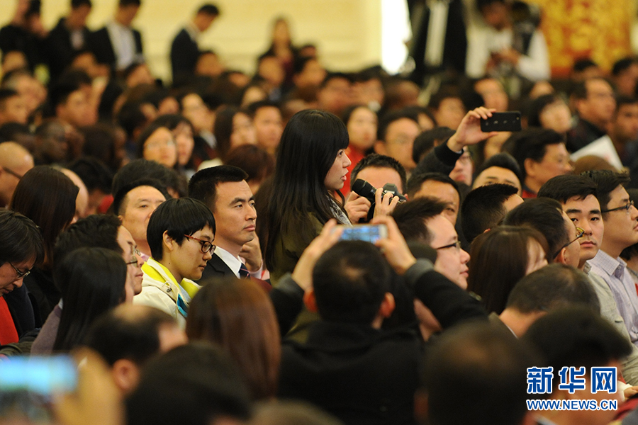 3月15日上午,國務(wù)院總理李克強(qiáng)在人民大會堂三樓金色大廳會見采訪十二屆全國人大五次會議的中外記者并回答記者提出的問題。圖為新加坡聯(lián)合早報(bào)記者提問。新華網(wǎng)/中國政府網(wǎng) 翟子赫 攝