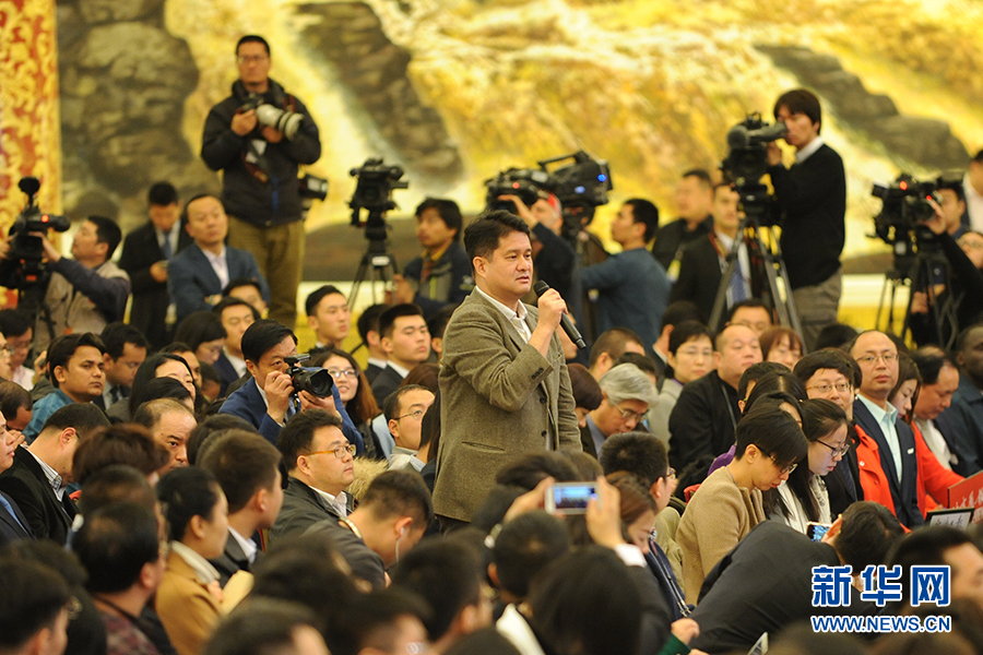 3月15日上午,國務院總理李克強在人民大會堂三樓金色大廳會見采訪十二屆全國人大五次會議的中外記者并回答記者提出的問題。圖為日本經(jīng)濟新聞社記者提問。新華網(wǎng)/中國政府網(wǎng) 翟子赫 攝
