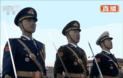 走在國(guó)旗手與護(hù)旗隊(duì)中間的分隊(duì)長(zhǎng),此次從一名增加到了三名,他們分別身著陸??哲姸Y服,配掛指揮刀,代表解放軍全軍,負(fù)責(zé)發(fā)出升國(guó)旗口令。